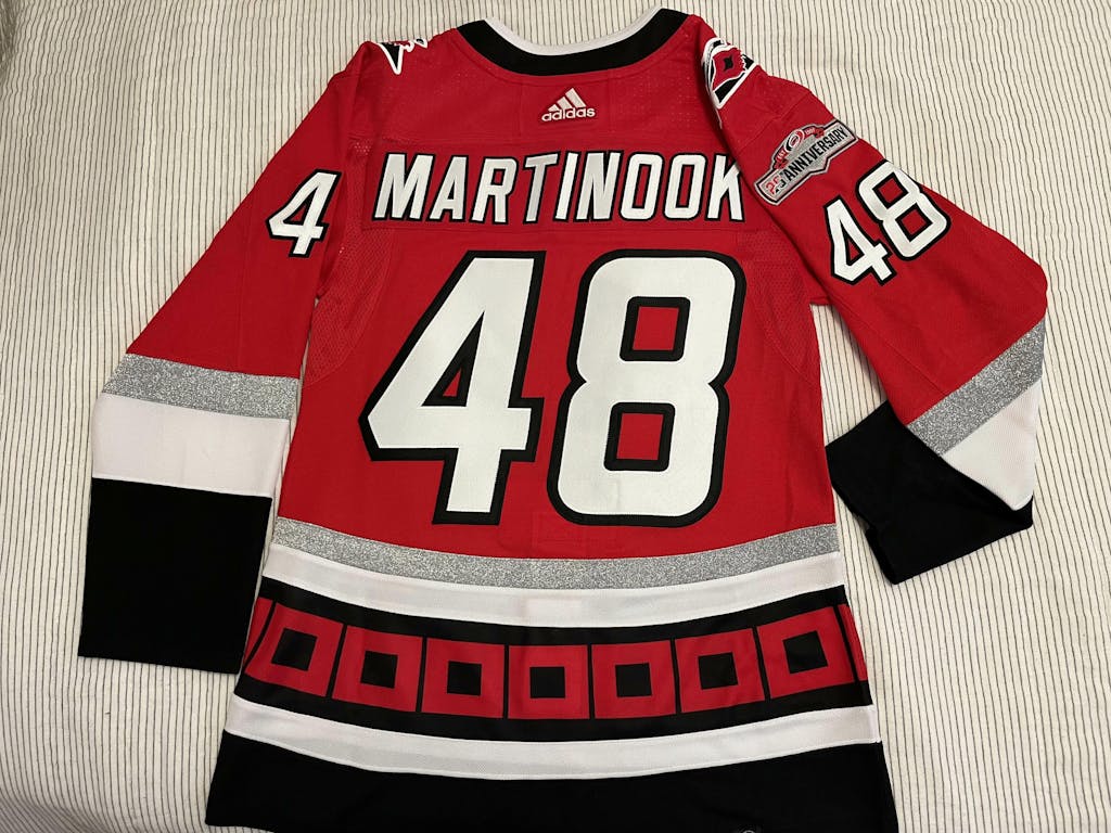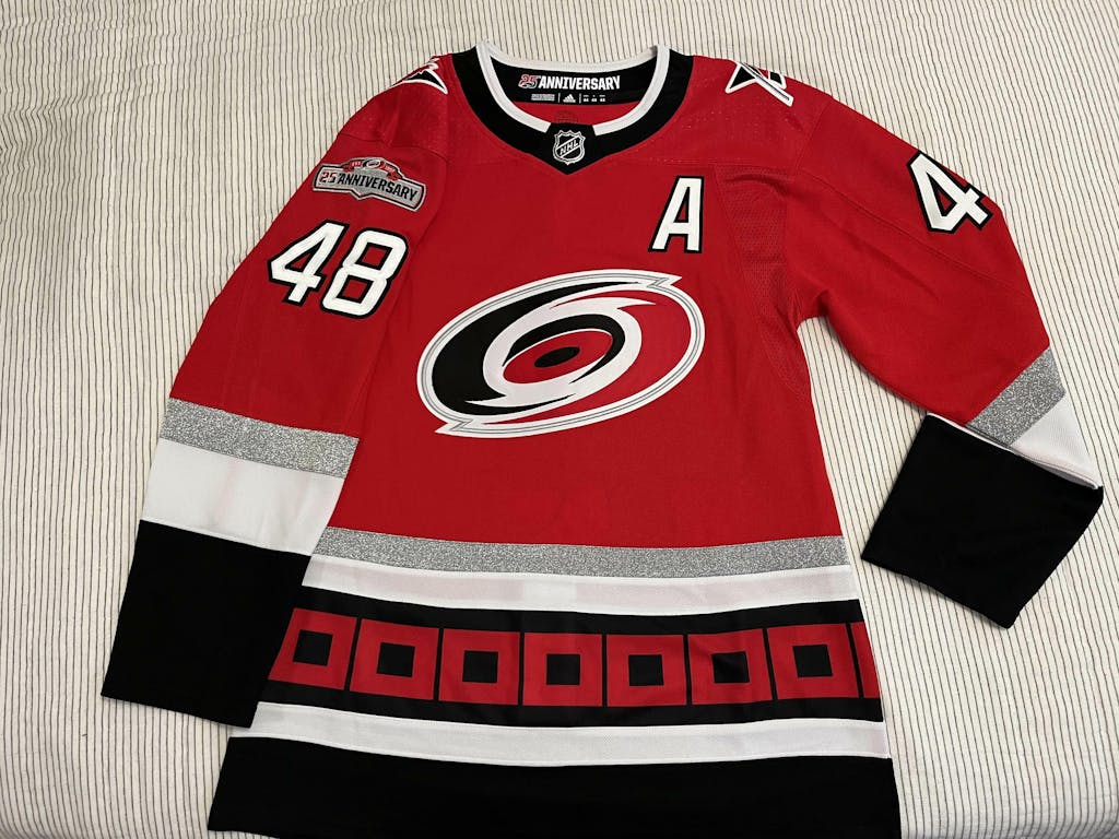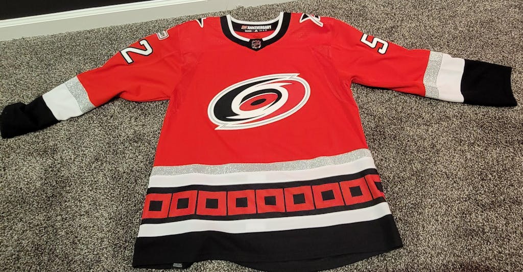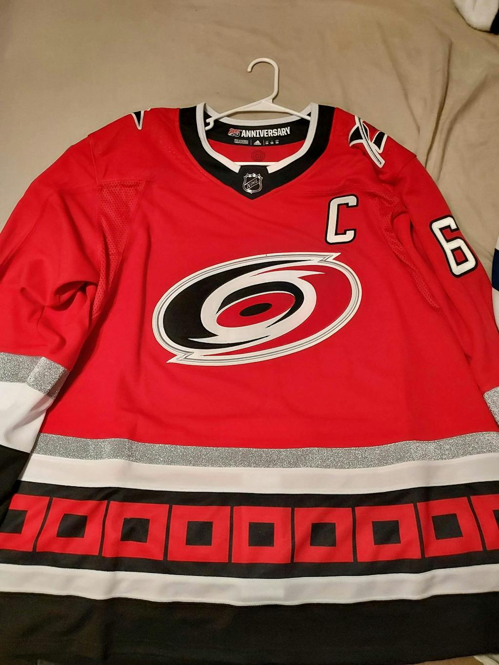 ANY NAME AND NUMBER CAROLINA HURRICANES 25TH ANNIVERSARY ADIDAS NHL JERSEY (HAND STITCHED ON-ICE NAME/NUMBER/CUSTOMIZATION)